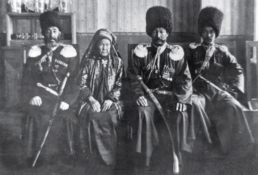 Photo: Güljemal Khan (center) with her stepson Magtymguly Khan (left) and her son Yusup Khan (right) in 1910 in St. Petersburg during the celebrations marking the 25th anniversary of the voluntary incorporation of Merv into the Russian Empire. A cropped section of a photograph taken by K. Bull (Soegov, 2020).