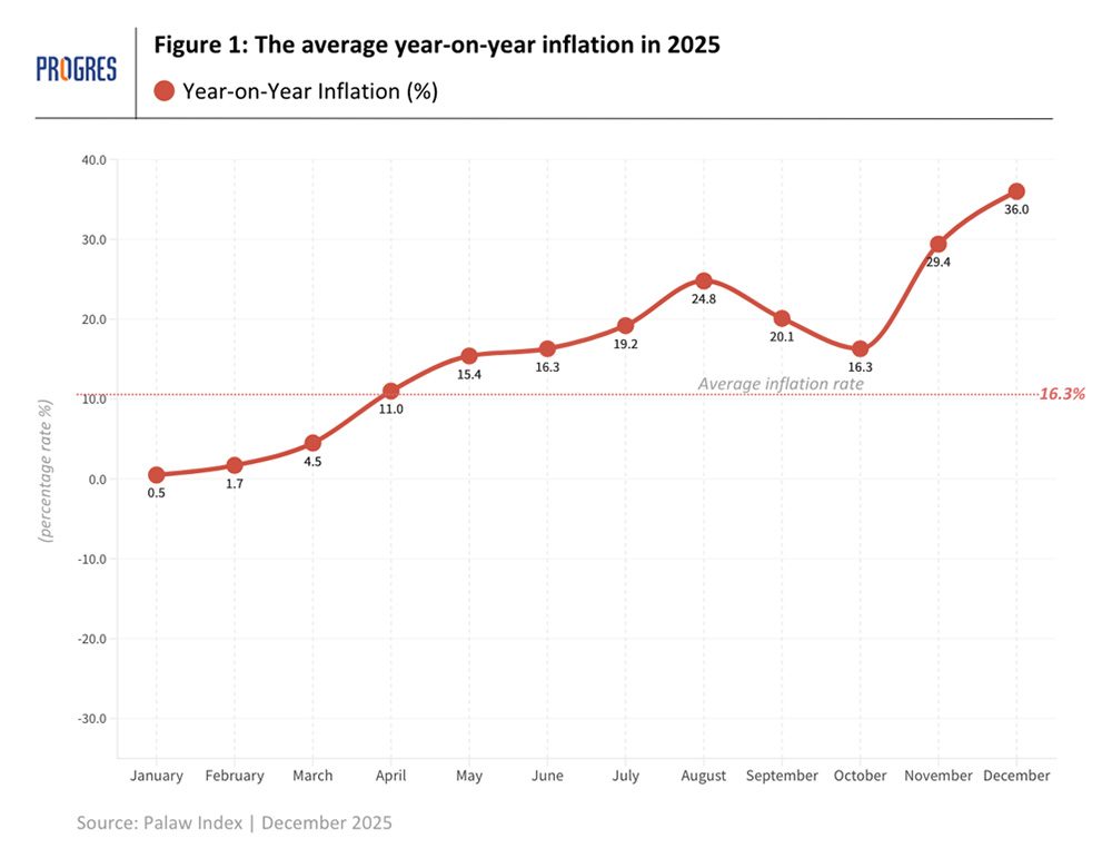 SUPPORT OUR WORKBeef prices climbed sharply since June 2025 due to livestock losses linked to drought, malnutrition, and disease. By December, meat prices reached 95 manat per kilogram, up from 60.8 manat a year earlier. Meanwhile, the minimum wage increased by 10% to 1,410 manat in 2025, lagging behind the 16.3% rise in the Palaw Index, indicating declining purchasing power.