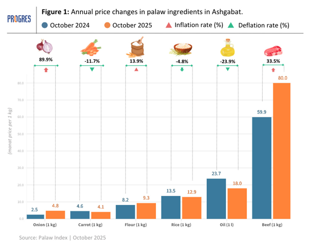Prices of key palaw ingredients in Ashgabat shifted notably in October 2025.