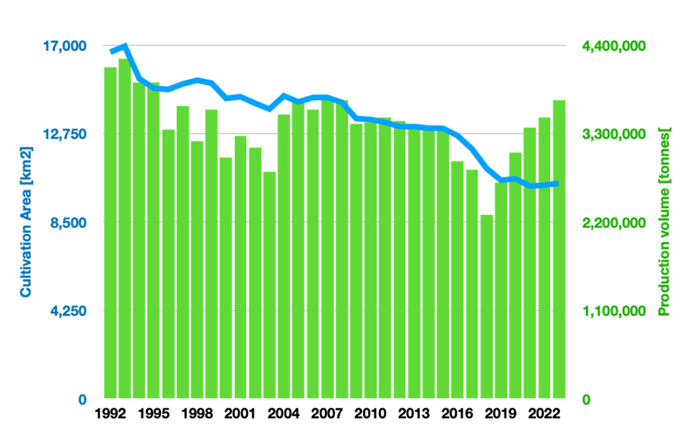 Cotton production and cultivation area in Uzbekistan