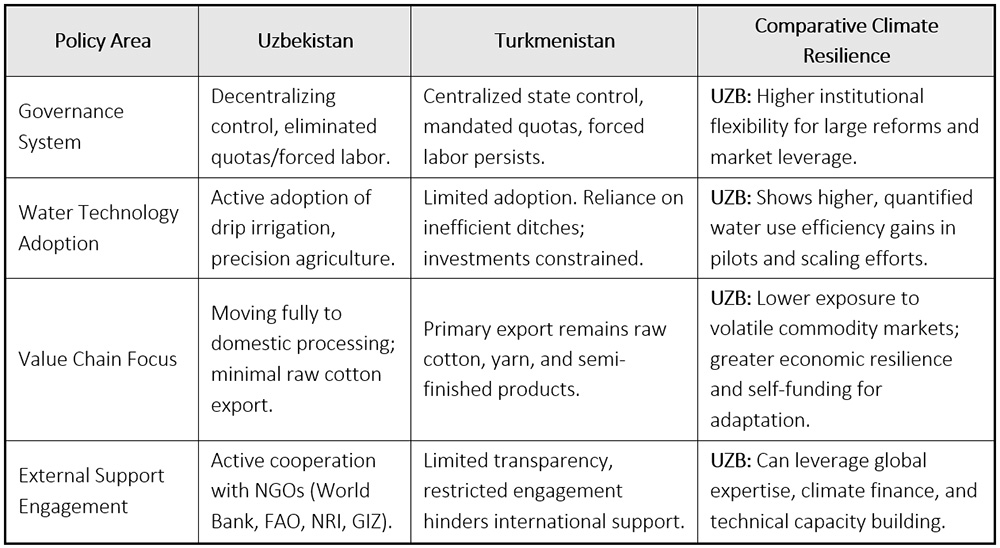 Table 1: Comparative Analysis of Adaptation Trajectories: Uzbekistan vs. Turkmenistan