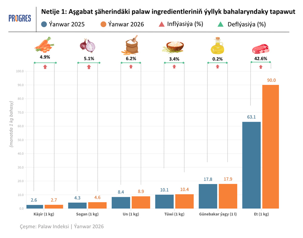 2026-njy ýylyň ýanwarynda palaw taýýarlamak üçin gerekli önümleriň hemmesiniň bahasy ýokarlandy.